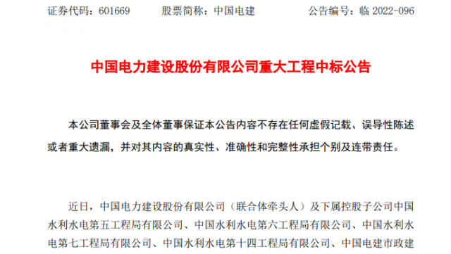 上述聯(lián)合體成員包括中國水利水電第五、第六、第七、第十四工程局,以及中國電建市政建設(shè)集團有限公司與上海電力建設(shè)有限責任公司、四川公路橋梁建設(shè)集團有限公司。