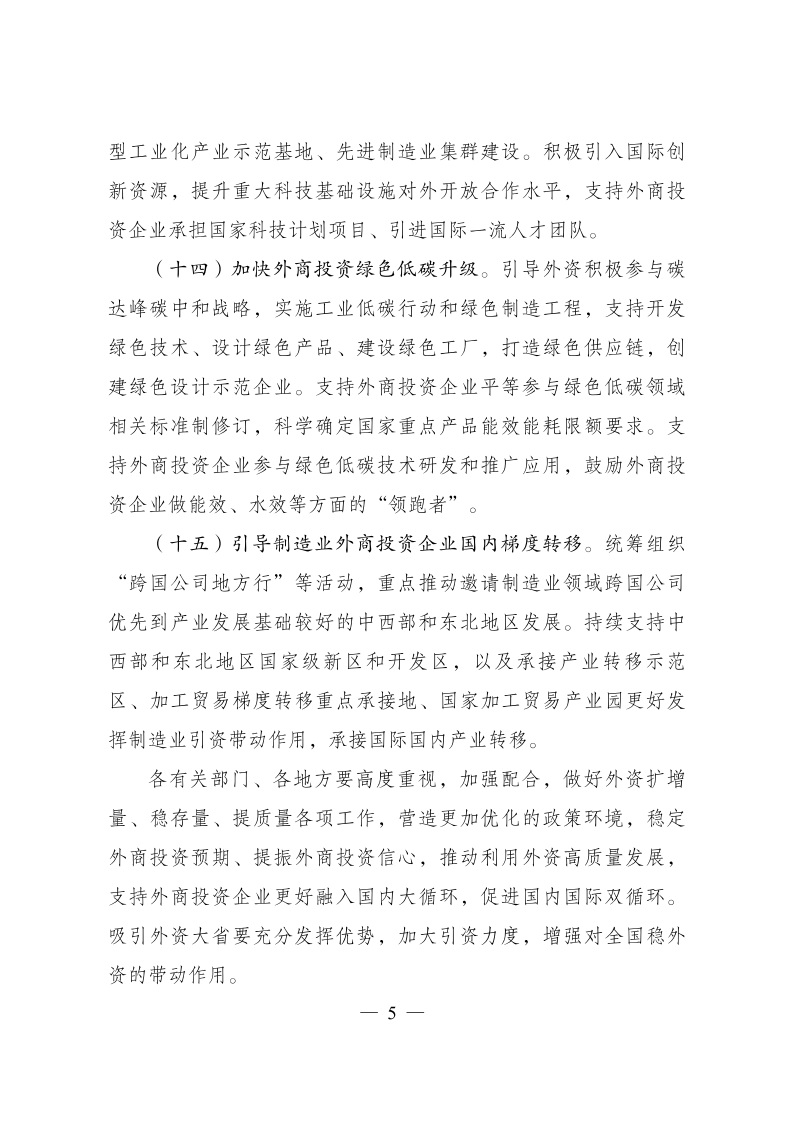 促進(jìn)外資擴(kuò)增量穩(wěn)存量提質(zhì)量的若干政策措施》的通知