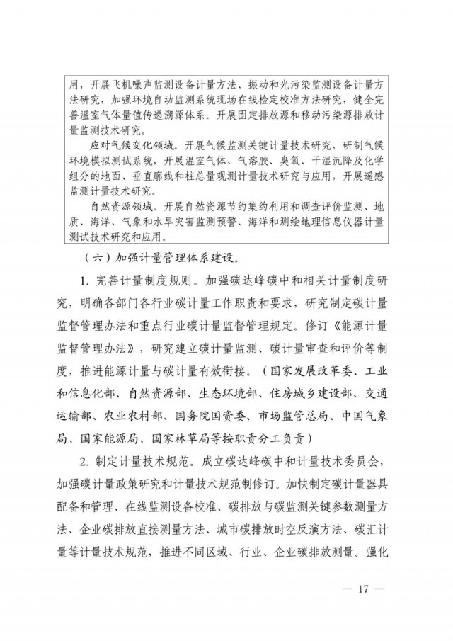 作為碳達峰碳中和“1+N”政策體系中重要文件之一,提出了完善碳排放基礎通用標準體系、加強重點領域碳減排標準體系建設、加快布局碳清除標準體系、健全市場化機制標準體系、完善計量技術體系、加強計量管理體系建設、健全計量服務體系7個方面的24項重點任務,明確了實施碳計量科技創(chuàng)新工程、碳計量基礎能力提升工程、碳計量標桿引領工程、碳計量精準服務工程、碳計量國際交流合作工程5項重點工程,開展雙碳標準強基行動、百項節(jié)能降碳標準提升行動、低碳前沿技術標準引領行動、綠色低碳標準國際合作行動4項重點行動,并對協(xié)調(diào)推動各項工作落實提出相應要求。