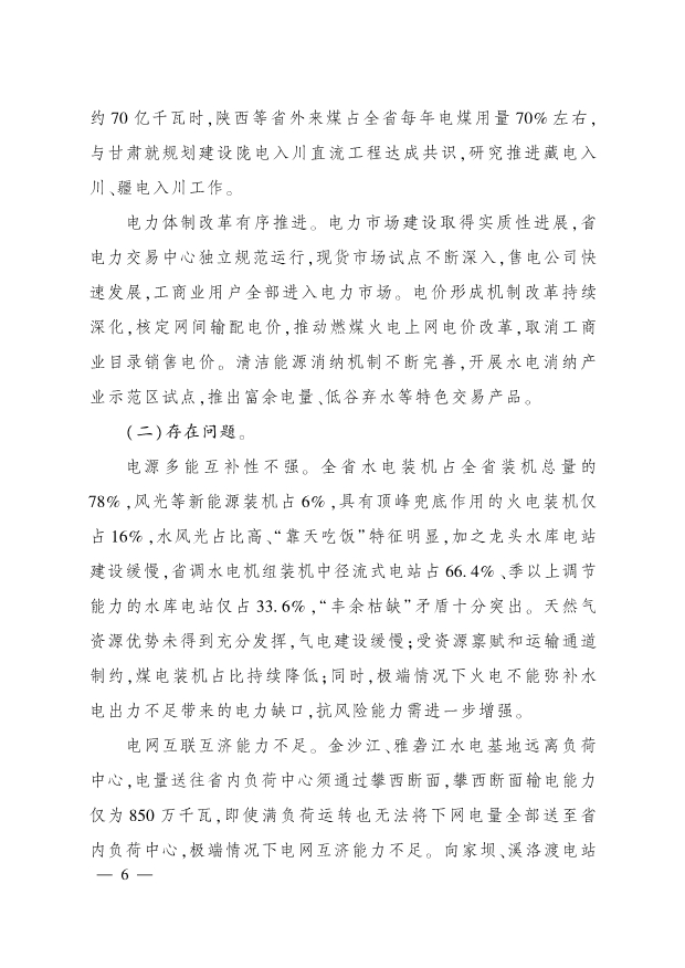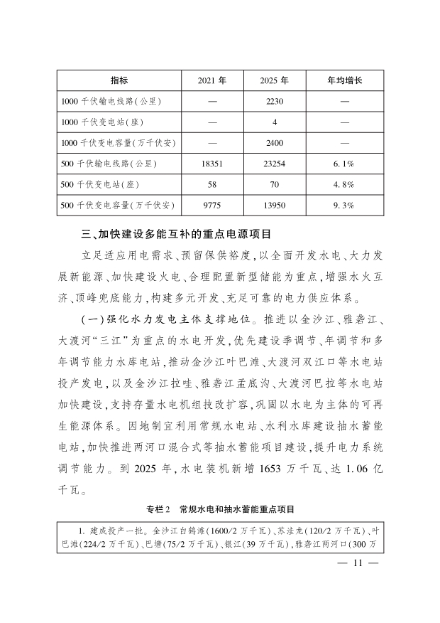12月6日,四川省人民政府印發(fā)《四川省電源電網(wǎng)發(fā)展規(guī)劃(2022—2025年)》,文件明確主要目標:到2025年,基本建成具備較強抗風險能力的電力系統(tǒng)。電力裝機規(guī)模達到16560萬千瓦,水電、火電、風電、光伏發(fā)電占比從77.8% 、15.9% 、4.6% 、1.7%調(diào)整為64.1% 、16.6% 、6.0% 、13.3% ,電源多能互補、水火互濟能力顯著增強。省調(diào)機組季以上調(diào)節(jié)能力水庫電站達40座、裝機2392萬千瓦,新建成氣電項目裝機容量850萬千瓦以上,開工建設抽水蓄能項目12個,“ 三州一市”,光伏基地和涼山州風電基地加快建設。