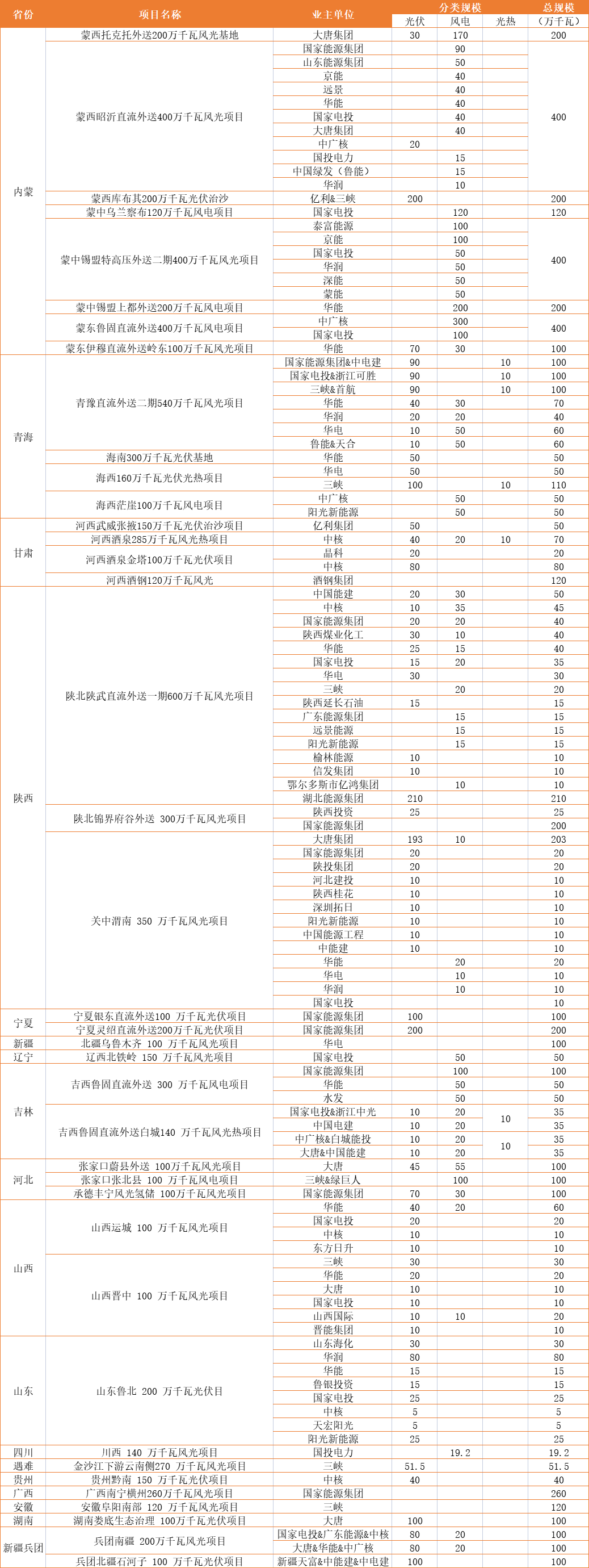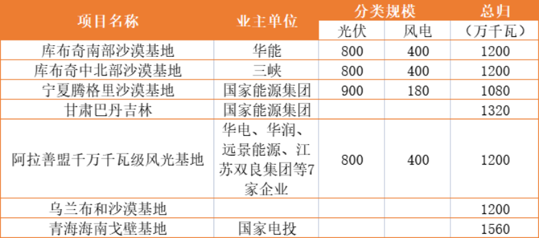 風光大基地:國家能源超40GW、國家電投、華能均超20GW