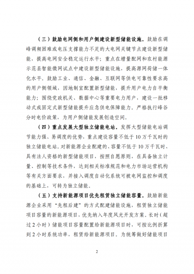 二、鼓勵新能源企業(yè)采用“先租后建”的方式配建儲能設施,租賃獨立儲能項目容量的的新能源項目,優(yōu)先納入年度風光開發(fā)方案。