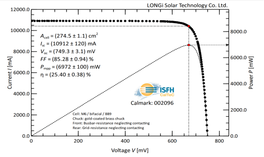 3月29日,經(jīng)德國哈梅林太陽能研究所(ISFH)認證,隆基采用摻鎵p型硅片制備的硅異質(zhì)結(jié)電池(p-HJT)獲得效率新突破:完全利用可量產(chǎn)工藝在全尺寸(M6尺寸,面積274.3cm)單晶硅片上,創(chuàng)造了轉(zhuǎn)換效率為25.47%的大尺寸p型光伏電池效率世界紀錄,進一步驗證了低成本異質(zhì)結(jié)量產(chǎn)技術(shù)的可行性。