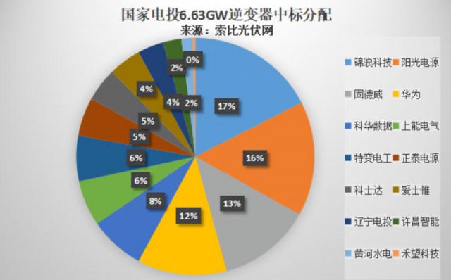 除已經(jīng)公開中標規(guī)模的逆變器中標,還有27.8GW公布了入圍情況,其中陽光電源中標15個標段、上能電氣中標10個標段、科華數(shù)據(jù)、禾望科技中標各9個、特變電工、錦浪科技各8個、科士達、華為各7個、株洲變流6個。