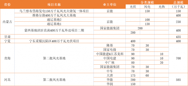 國家級(jí)大基地規(guī)劃及業(yè)主名單