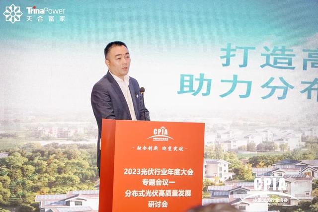 2023年12月14日,為深入探討新形勢(shì)下光伏市場(chǎng)發(fā)展情況、發(fā)展方向與路徑,促進(jìn)行業(yè)交流與溝通,由中國(guó)光伏行業(yè)協(xié)會(huì)與宿遷市人民政府聯(lián)合主辦的“2023光伏行業(yè)年度大會(huì)”在宿遷盛大開幕,天合富家能源股份有限公司董事長(zhǎng)高海純應(yīng)邀出席并為分布式光伏高質(zhì)量發(fā)展研討會(huì)致辭。