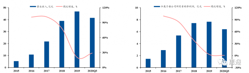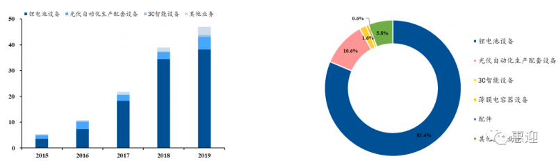 公司是光伏自動化組件設(shè)備的頭部供應(yīng)商,下游客戶涵蓋國內(nèi)多家知名光伏組件企業(yè),同時積極布局新型組件設(shè)備,向壁壘較高的電池設(shè)備領(lǐng)域延伸,探索新增長點(diǎn)。2015-2019 年,公司業(yè)績大幅增長,營業(yè)收入從 2.92 億元增長至 7.9 億元,CAGR 為 31.08%。截止 2020 年第三季度,公司的歸母凈利潤為 0.65 億元,同比增長 65%,超過 2019 年全年歸母凈利潤。合同負(fù)債已達(dá) 3.71 億元,為 2021 年業(yè)績奠定良好基礎(chǔ)。2019 年,光伏組件自動化生產(chǎn)線作為公司的主營業(yè)務(wù),占總營收的 93.11%,輔之以串焊機(jī)、層壓機(jī)等價值量較高的單機(jī)設(shè)備。
