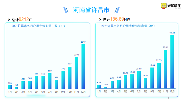 2021年河南省戶用光伏安裝了15.41萬(wàn)戶,12月份安裝戶數(shù)占全年的22.66%。
