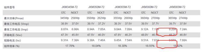 實際上,要理解這些并不難,較之常規(guī)多晶單晶組件,雙面組件的峰值功率電流及短路電流都有很大提升。為證明這一結論,我們不妨截取代表性組件企業(yè)主流功率段單晶組件(60片)的性能參數來看: