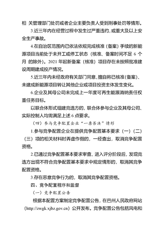 4.近三年內(nèi)在經(jīng)營(yíng)過程中發(fā)生過嚴(yán)重違約,或重大及以上安全生產(chǎn)事故,未經(jīng)政府有關(guān)部門同意,擅自將已核準(zhǔn)(備案)、未建成新能源項(xiàng)目轉(zhuǎn)讓其他企業(yè)或項(xiàng)目投資主體發(fā)生變化以及被列入嚴(yán)重違法失信企業(yè)黑名單,且處于被責(zé)令停業(yè)、財(cái)產(chǎn)被接管、凍結(jié)、破產(chǎn)等狀態(tài)的企業(yè)(包括聯(lián)合體參與企業(yè))不得參加投標(biāo)。