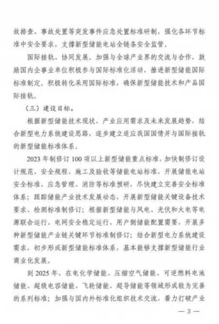 到2025年,在電化學(xué)儲能、壓縮空氣儲能、可逆燃料電池儲能、超級電容儲能、飛輪儲能、超導(dǎo)儲能等領(lǐng)域形成較為完善的系列標(biāo)準(zhǔn);加強與國內(nèi)外標(biāo)準(zhǔn)化組織技術(shù)交流,著力打破產(chǎn)業(yè)發(fā)展瓶頸,規(guī)范引導(dǎo)產(chǎn)業(yè)高質(zhì)量發(fā)展,保障儲能電站安全;加大國際標(biāo)準(zhǔn)化力度,深度參與國際電工委員會(IEC)國際標(biāo)準(zhǔn)化工作,支撐標(biāo)準(zhǔn)走出去。逐步構(gòu)建適應(yīng)技術(shù)創(chuàng)新趨勢、滿足產(chǎn)業(yè)發(fā)展需求、對標(biāo)國際先進(jìn)水平的新型儲能標(biāo)準(zhǔn)體系。