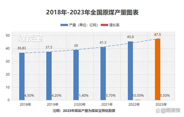 2023年1-4月全國能源生產(chǎn)情況:全國生產(chǎn)原煤15.27億噸,同比增長4.8%,煤炭寶初步預計2023年我國煤炭總產(chǎn)量為47.5億噸左右。