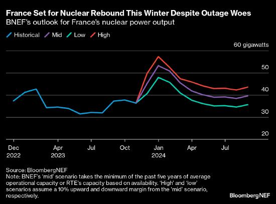 鑒于這些最新進(jìn)展,彭博新能源財(cái)經(jīng)將其對(duì)法國12月可用核電裝機(jī)容量的預(yù)測(cè)下調(diào)至45GW,較之前的預(yù)測(cè)低7%。不過,彭博新能源財(cái)經(jīng)仍然預(yù)測(cè),法國在即將到來冬季的可用核電裝機(jī)容量平均為50GW,比去年同期增長23%。