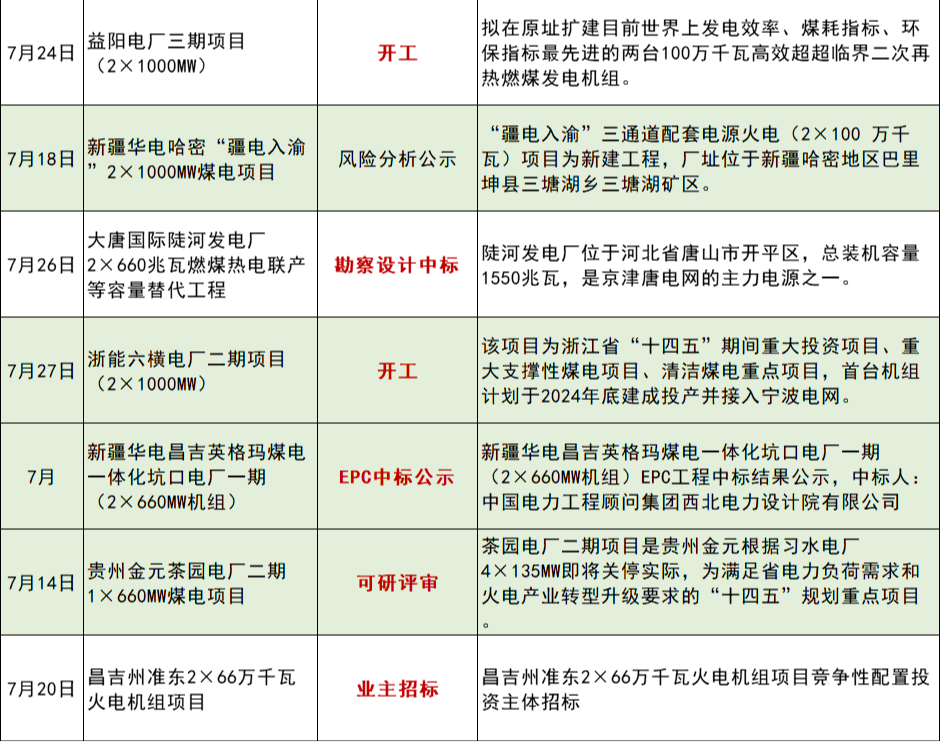 7月份,五大發(fā)電集團(tuán)均有煤電項(xiàng)目取得了重要進(jìn)展,多個(gè)項(xiàng)目計(jì)劃在“十四五”期間開工。