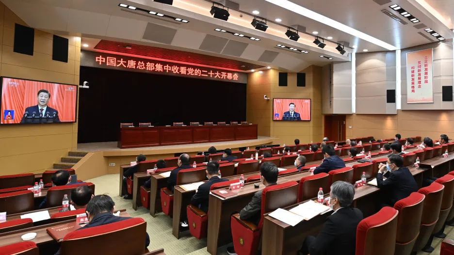 中國大唐黨員干部群眾早早端坐在屏幕前,懷著激動的心情,收聽收看黨的二十大開幕會,認真聆聽習近平總書記所作的報告。集團公司領(lǐng)導劉明勝、時家林、王瑛、曲波、張傳江、彭勇、陶云鵬和總部副經(jīng)理級及以上干部分別在總部3個會場,系統(tǒng)31991名黨員干部職工在全國1873個會場集中收看開幕會盛況。