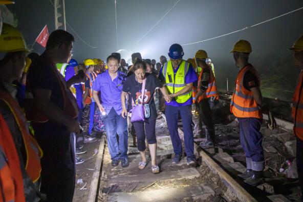 中鐵十四局調(diào)集300余名職工組成7支救援隊(duì),連夜翻山越嶺抵達(dá)搶險(xiǎn)一線,8月3日凌晨,在峽谷塌方前,組成“人墻”護(hù)欄,幫助Z180次列車503名乘客疏散到安全地帶。