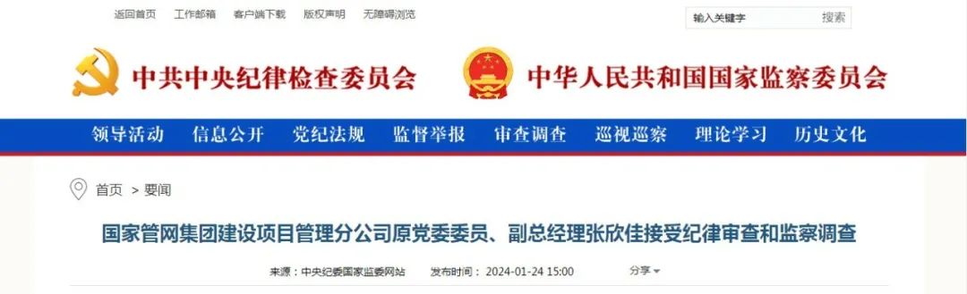 中央紀(jì)委國(guó)家監(jiān)委網(wǎng)站1月24日,據(jù)國(guó)家管網(wǎng)集團(tuán)紀(jì)檢監(jiān)察組、遼寧省紀(jì)委監(jiān)委消息:國(guó)家管網(wǎng)集團(tuán)建設(shè)項(xiàng)目管理分公司原黨委委員、副總經(jīng)理張欣佳涉嫌嚴(yán)重違紀(jì)違法,目前正接受國(guó)家管網(wǎng)集團(tuán)紀(jì)檢監(jiān)察組和遼寧省錦州市監(jiān)委紀(jì)律審查和監(jiān)察調(diào)查。
