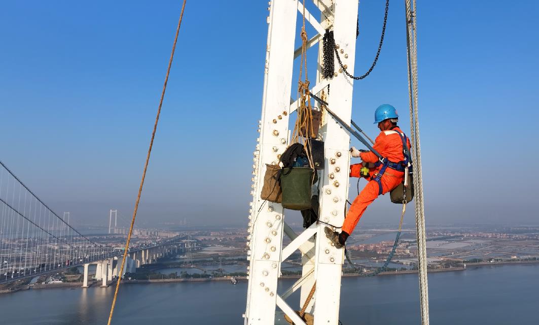 “這是我參與建設(shè)最復(fù)雜、難度最高的大跨越施工。”陳勁松,這位全國勞動(dòng)模范、南方電網(wǎng)廣東電網(wǎng)能源發(fā)展有限公司送電隊(duì)隊(duì)長盯著眼前的鐵塔比劃著,新電塔建成后,將提升輸電容量40%,高度將達(dá)到264.5米,刷新國內(nèi)紀(jì)錄,并增強(qiáng)抵御臺(tái)風(fēng)的能力,為粵港澳大灣區(qū)電力互聯(lián)互通提供更有力的保障。