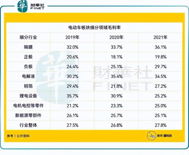動(dòng)力電池的成本構(gòu)成是——正極40%,負(fù)極15%,隔膜20%,電解液15%,從成本端來看,隔膜并不是最高的,但是依然選擇恩捷股份(002812.SZ)的原因一是恩捷股份的市占率較高,寡頭效應(yīng)明顯;二是,隔膜行業(yè)的毛利率較高,如下所示。