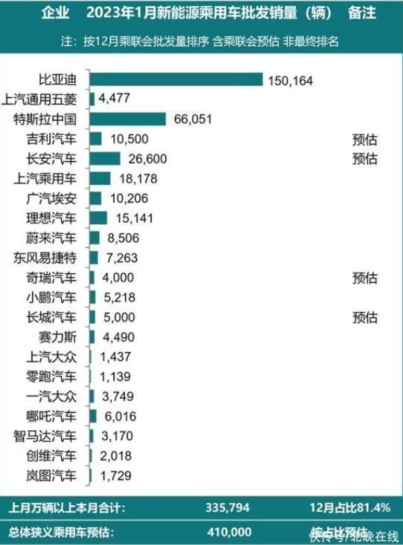 1月主力廠商新能源批發(fā)銷量。數(shù)據(jù)來源:乘聯(lián)會(huì)