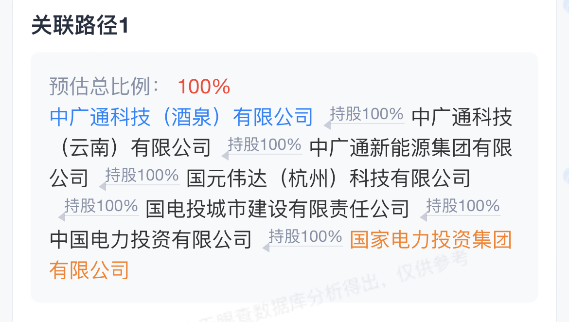 據(jù)天眼查,追溯其股權結構,中廣通科技酒泉公司為國家電力投資集團有限公司全資控股的七級子公司。國家電投集團是全球最大的清潔能源發(fā)電企業(yè)、國內(nèi)五大發(fā)電央企之一。