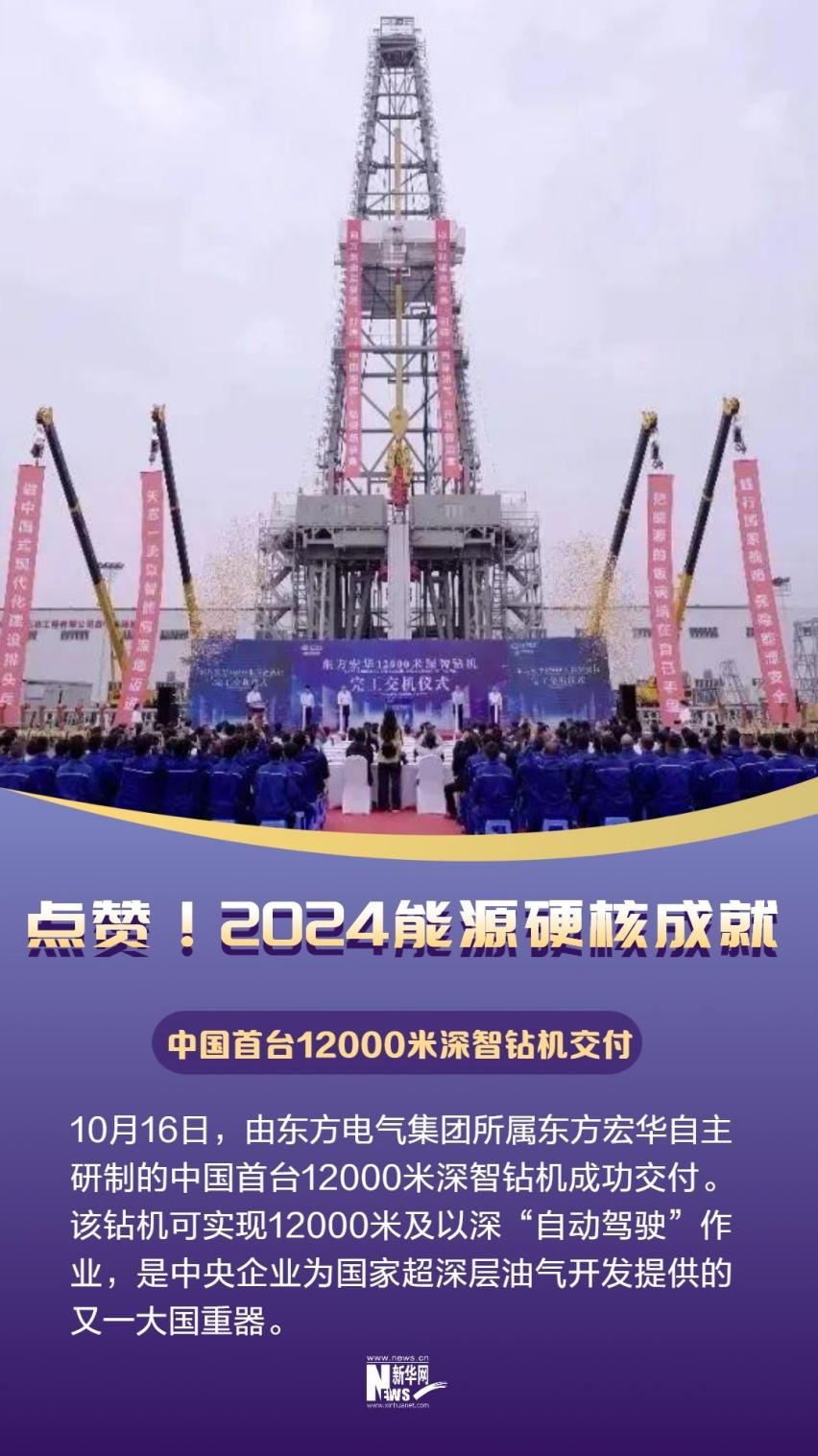 10月16日,由東方電氣集團所屬東方宏華自主研制的中國首臺12000米深智鉆機成功交付。該鉆機可實現(xiàn)12000米及以深“自動駕駛”作業(yè),是中央企業(yè)為國家超深層油氣開發(fā)提供的又一大國重器。