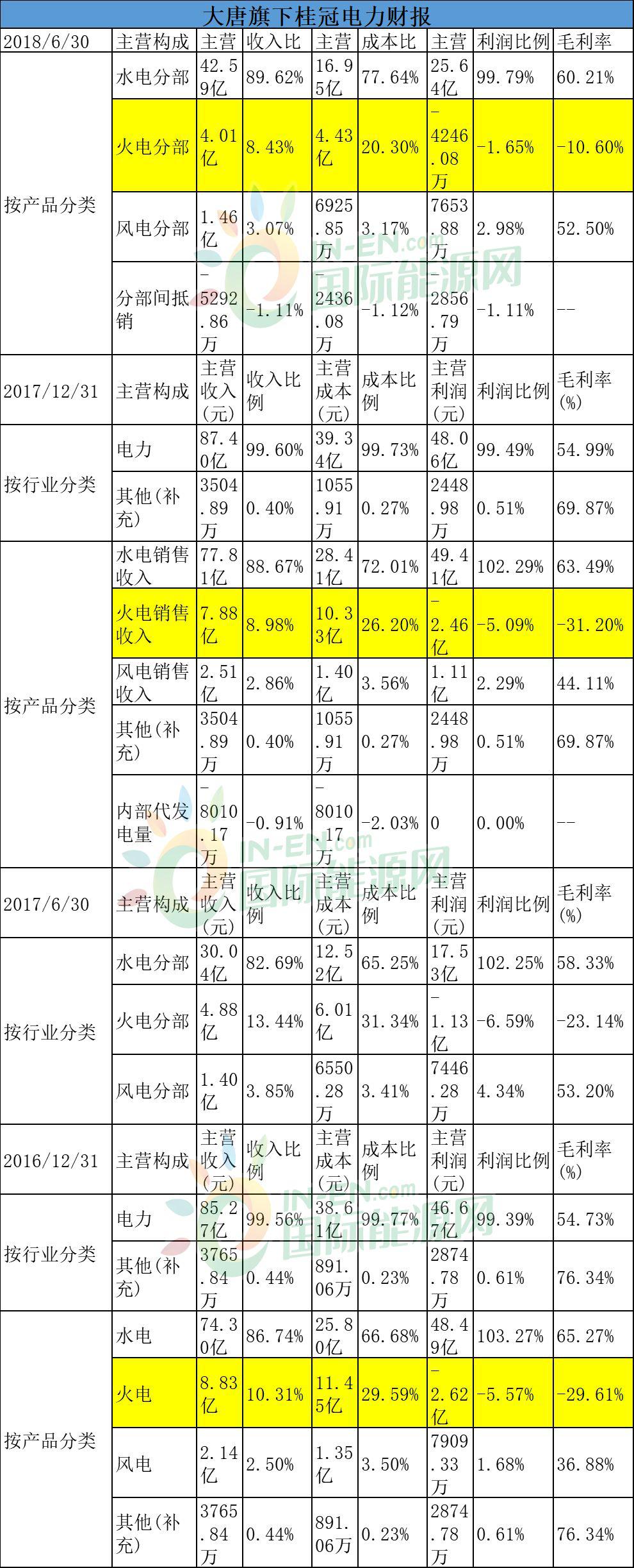 大唐集團旗下的上市公司桂冠電力(600236)財報顯示,火電板塊一直都在拖業(yè)績的后腿。2016年火電利潤占比是-5.57%,2017年上半年,火電利潤占比是-6.59%,到2018年上半年,火電利潤占比依然是負數(shù)。