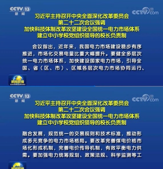 新華社北京11月24日電 中共中央總書記、國家主席、中央軍委主席、中央全面深化改革委員會主任習(xí)近平11月24日下午主持召開中央全面深化改革委員會第二十二次會議,審議通過了《科技體制改革三年攻堅方案(2021-2023年)》、《關(guān)于加快建設(shè)全國統(tǒng)一電力市場體系的指導(dǎo)意見》、《關(guān)于建立中小學(xué)校黨組織領(lǐng)導(dǎo)的校長負(fù)責(zé)制的意見(試行)》、《關(guān)于讓文物活起來、擴大中華文化國際影響力的實施意見》、《關(guān)于支持中關(guān)村國家自主創(chuàng)新示范區(qū)開展高水平科技自立自強先行先試改革的若干措施》。