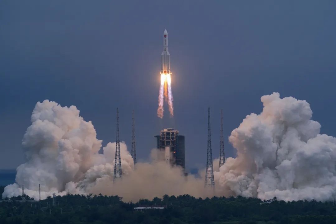 征途無限,前行不怠。圖為長征五號B運載火箭發(fā)射空間站天和核心艙。(宿東 攝)