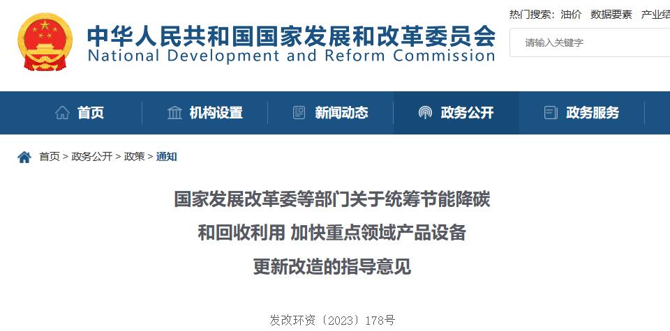 國家發(fā)展改革委等部門關于統(tǒng)籌節(jié)能降碳和回收利用 加快重點領域產品設備更新改造的指導意見