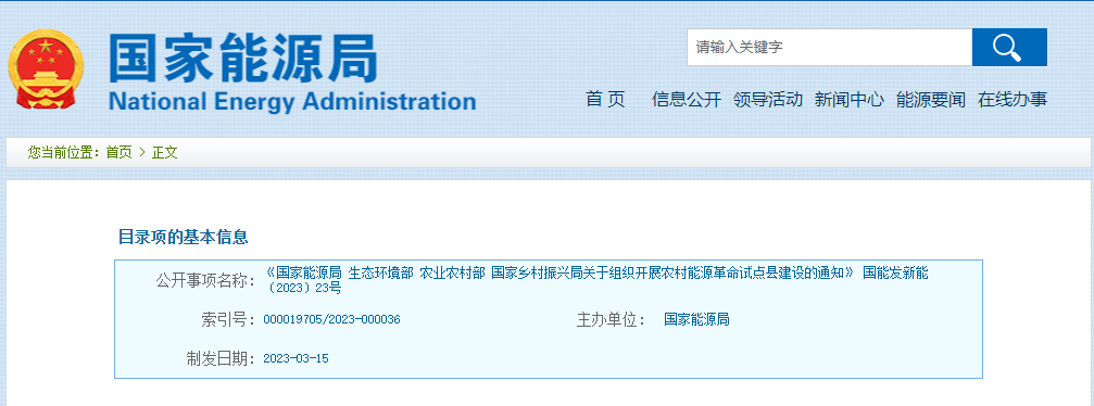 《國(guó)家能源局 生態(tài)環(huán)境部 農(nóng)業(yè)農(nóng)村部 國(guó)家鄉(xiāng)村振興局關(guān)于組織開(kāi)展農(nóng)村能源革命試點(diǎn)縣建設(shè)的通知》