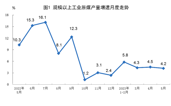 5月份,規(guī)模以上工業(yè)主要能源產(chǎn)品生產(chǎn)均保持同比增長(zhǎng)。與4月份比,原煤、電力生產(chǎn)略有放緩,原油、天然氣生產(chǎn)有所加快。