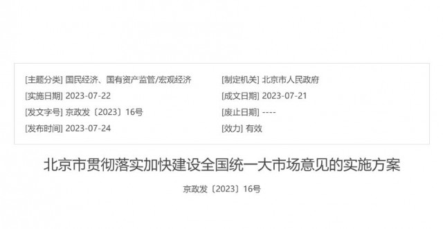 《北京市貫徹落實(shí)加快建設(shè)全國統(tǒng)一大市場意見的實(shí)施方案》全文如下: