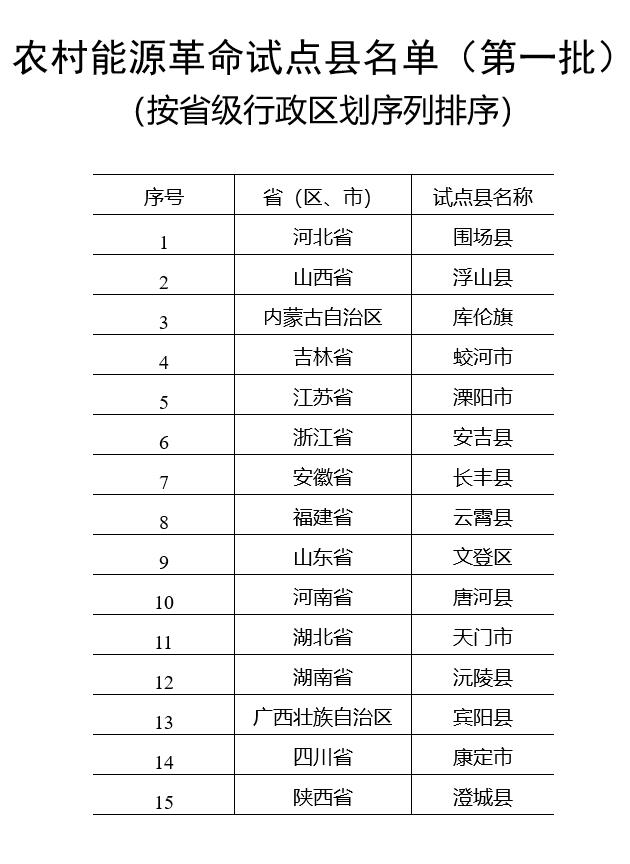 國家能源局綜合司 生態(tài)環(huán)境部辦公廳 農(nóng)業(yè)農(nóng)村部辦公廳關于公布農(nóng)村能源革命試點縣名單(第一批)的通知