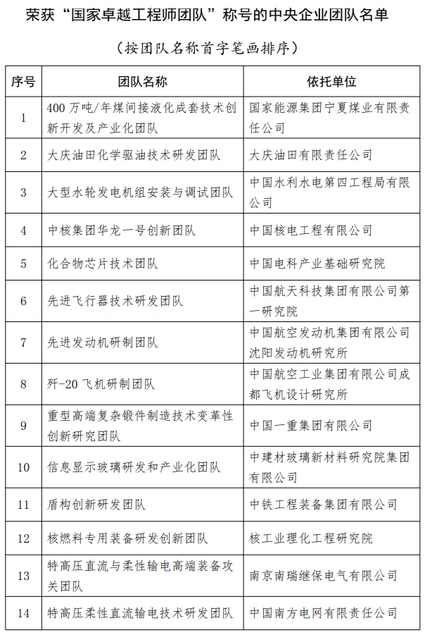 中央企業(yè)共有王軍等29名工程科技人才榮獲“國家卓越工程師”稱號(hào),400萬噸/年煤間接液化成套技術(shù)創(chuàng)新開發(fā)及產(chǎn)業(yè)化團(tuán)隊(duì)等20個(gè)團(tuán)隊(duì)榮獲“國家卓越工程師團(tuán)隊(duì)”稱號(hào)。