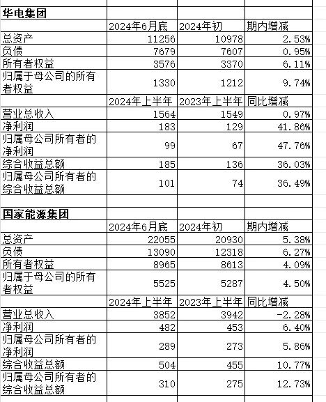 請注意,上述數(shù)據(jù)反映了六大發(fā)電集團(tuán)在2024年上半年與2023年同期相比的變化情況。這些數(shù)字有助于了解企業(yè)在經(jīng)濟(jì)活動中的表現(xiàn)趨勢。