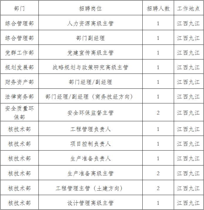 面向社會(huì)公開招聘。國家電投集團(tuán)系統(tǒng)內(nèi)員工優(yōu)先。