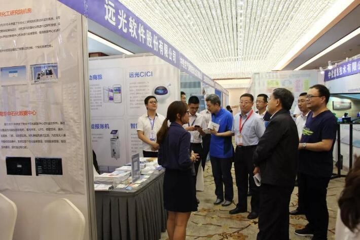 圖注:中國石油天然氣股份有限公司規(guī)劃總院副院長葛雁冰、中國石油集團工程技術研究院有限公司副總經理趙彤等領導參觀遠光軟件展臺