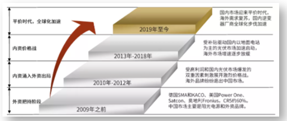 回顧逆變器的發(fā)展歷史,2003年陽光電源推出中國首臺擁有自主知識產(chǎn)權(quán)的逆變器。2012年全球出貨量前十中只有陽光電源一家中國企業(yè)。2015年以來,華為、陽光電源和SMA的出貨量前三地位穩(wěn)定,而行業(yè)腰部企業(yè)市場份額接近,競爭更為激烈。在激烈的角逐中,中國逆變器企業(yè)逐漸崛起。如今,陽光電源、華為等品牌逆變器穩(wěn)扎穩(wěn)打,在國際站穩(wěn)腳跟。歷經(jīng)激烈競爭、行業(yè)迭代,我國逆變器企業(yè)實(shí)現(xiàn)從無到有、從有到強(qiáng)的強(qiáng)勢蛻變。