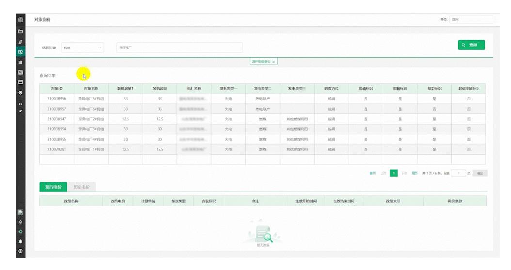 按結(jié)算對象類型分類查找,實現(xiàn)快速獲取具體結(jié)算對象的現(xiàn)行政策電價及歷史政策電價,與電費結(jié)算的執(zhí)行電價進行稽核對比,降低電價執(zhí)行風(fēng)險。