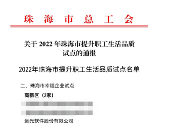 本次入選珠海市幸福企業(yè)試點(diǎn)單位是對遠(yuǎn)光軟件做好職工服務(wù)工作的肯定。按照試點(diǎn)任務(wù)要求,下一步,遠(yuǎn)光軟件將從改善職工生活條件、健全完善職工困難幫扶機(jī)制、依法保障職工享受福利待遇、豐富服務(wù)職工供給資源、建立職工健康服務(wù)體系、加強(qiáng)職工人文關(guān)懷、推動(dòng)勞動(dòng)關(guān)系和諧穩(wěn)定等方面,全力塑造職工生活幸福發(fā)展環(huán)境,創(chuàng)建職工生活幸福型企業(yè),更好滿足廣大職工群眾對美好生活的需要。