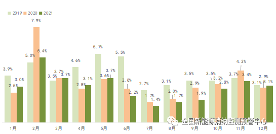 2021年全國棄風率逐月變化情況