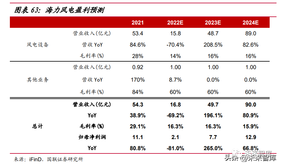 風電鑄件量利齊升,齒輪箱零部件放量在即。受益于產能擴產,以及海風裝機 需求回暖,公司風電鑄件的海風出貨占比有望提升,再疊加原材料價格回落,公司 風電鑄件業(yè)務盈利能力有望修復,預計 2022-23 年公司風電鑄件出貨 5/10 萬噸;公司的風電齒輪箱零部件設備已經與客戶進行小批量產品試制,預計 2023-24 年 齒輪箱零部件業(yè)務出貨 2/4 萬噸。我們預計 2022-24 年公司歸母凈利潤分別為 1.31/3.73/6.31 億元,同比25.69%/185.06%/69.03%;EPS 分別為 0.61/1.74/2.94 元/股。