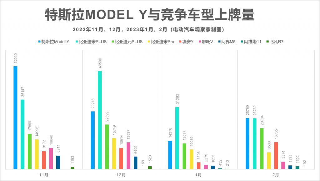 比亞迪宋 PLUS 對(duì) Model Y 的銷量優(yōu)勢(shì)差距在 2 月被快速拉近;