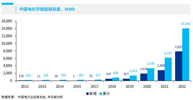 截至2022年底,全國電力安全生產(chǎn)委員會19家企業(yè)成員單位累計投運電化學(xué)儲能電站472座、總能量14.1GWh、同比增長127%;2022年,新增投運電化學(xué)儲能電站194座、總能量7.9GWh,占已投運電站總能量的60.2%,同比增長176%。
