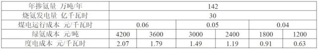 煤電燒氨經(jīng)濟(jì)性評(píng)估(年利用小時(shí)數(shù)3000小時(shí))