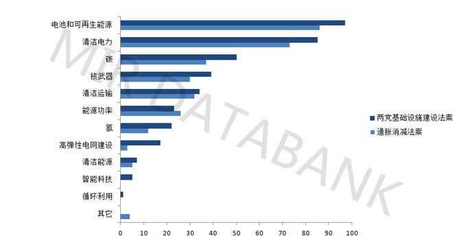 美國(guó)IRA法案與BIL法案各項(xiàng)目投入資金對(duì)比(單位:億美元)