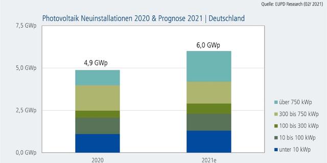 據(jù)《光伏》雜志,2021年,德國新增超過5GW光伏裝機,較上年增長20%,這使得德國光伏的總裝機量達到了59GW,超過了該國陸上風電的裝機容量。