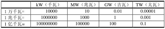 1 TWh=10億千萬時(shí) ; 1萬千瓦=0.01GW ; 1 GW=100萬千瓦