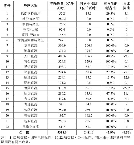 五、特高壓線路輸送可再生能源情況